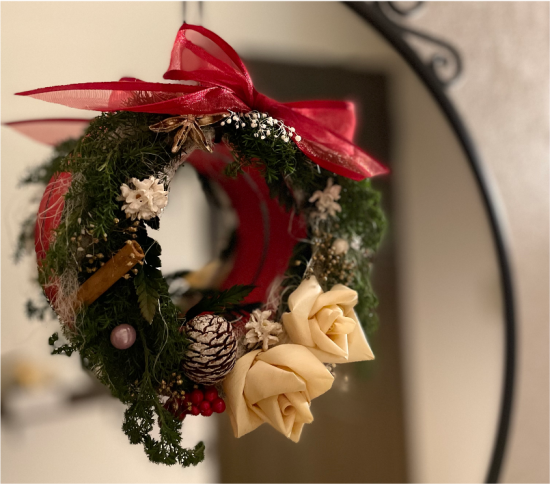 〜 クリスマスの食卓や壁かざりに枯れない薔薇のリースを 〜